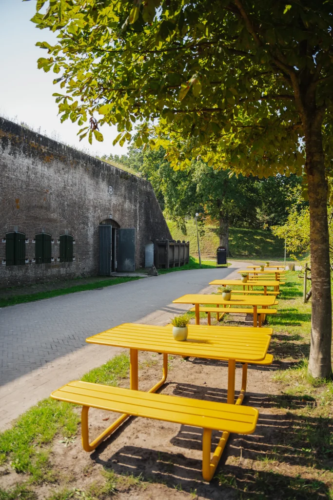 Fort bij Vechten is zorgvuldig gerestaureerd met respect voor de oorspronkelijke bouw en karakteristieke elementen. Daardoor zijn de robuuste architectuur en heldere structuur nog altijd zichtbaar. Wat ooit draaide om bescherming en overzicht, vormt nu het unieke decor voor bijeenkomsten, vieringen en evenementen.
