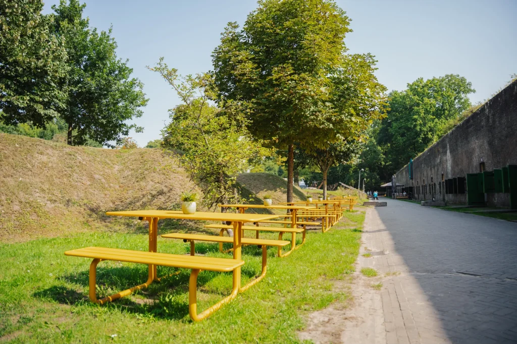 Vanaf de parkeerplaats loop je via het voetpad en de brug dankzij goede bewegwijzering het fortterrein op.