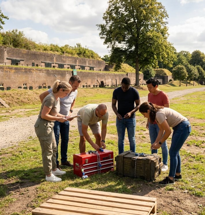 Niet elk team heeft behoefte aan competitie. Soms wil je gewoon samen iets ontdekken, even wandelen over het fort en luisteren naar verhalen die je niet kent. Mensen stellen vragen, wijzen dingen aan, lopen in hun eigen tempo. Het geeft ruimte voor gesprekken die op kantoor niet gebeuren.